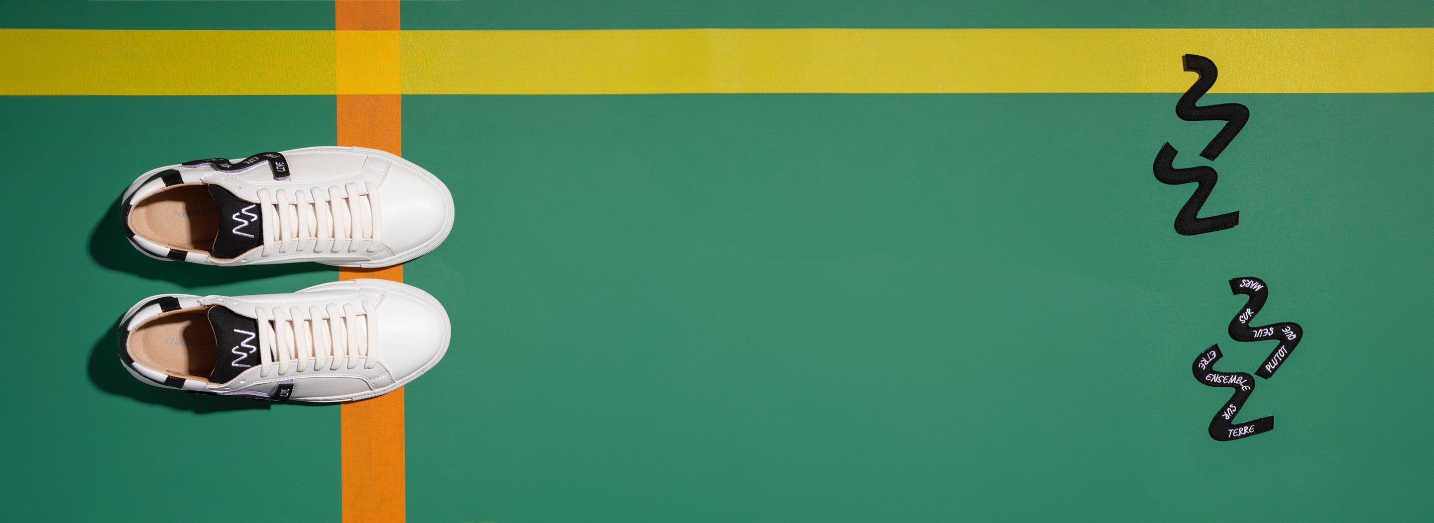 Nous avons développé une collection de baskets customisables grâce à un ingénieux système de straps amovibles. Assortissez vos baskets personnalisables à votre mood ou votre tenue en affichant un message qui vous inspire ou une couleur qui s'accorde à votre outfit.