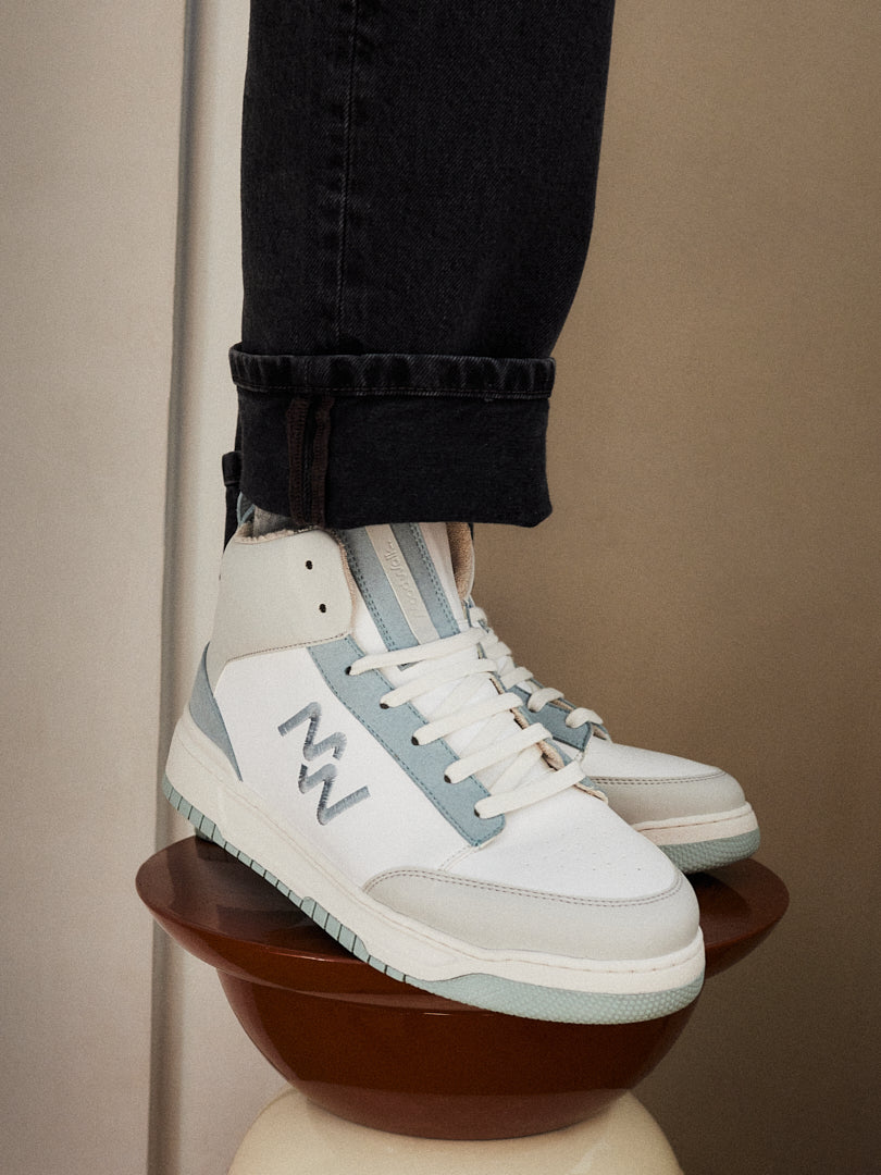 The Ice Blue – French Touch is the perfect high-top sneaker for combining comfort, style, and ethics . Inspired by the world of basketball, it adopts a retro-chic silhouette revisited with a modern touch.